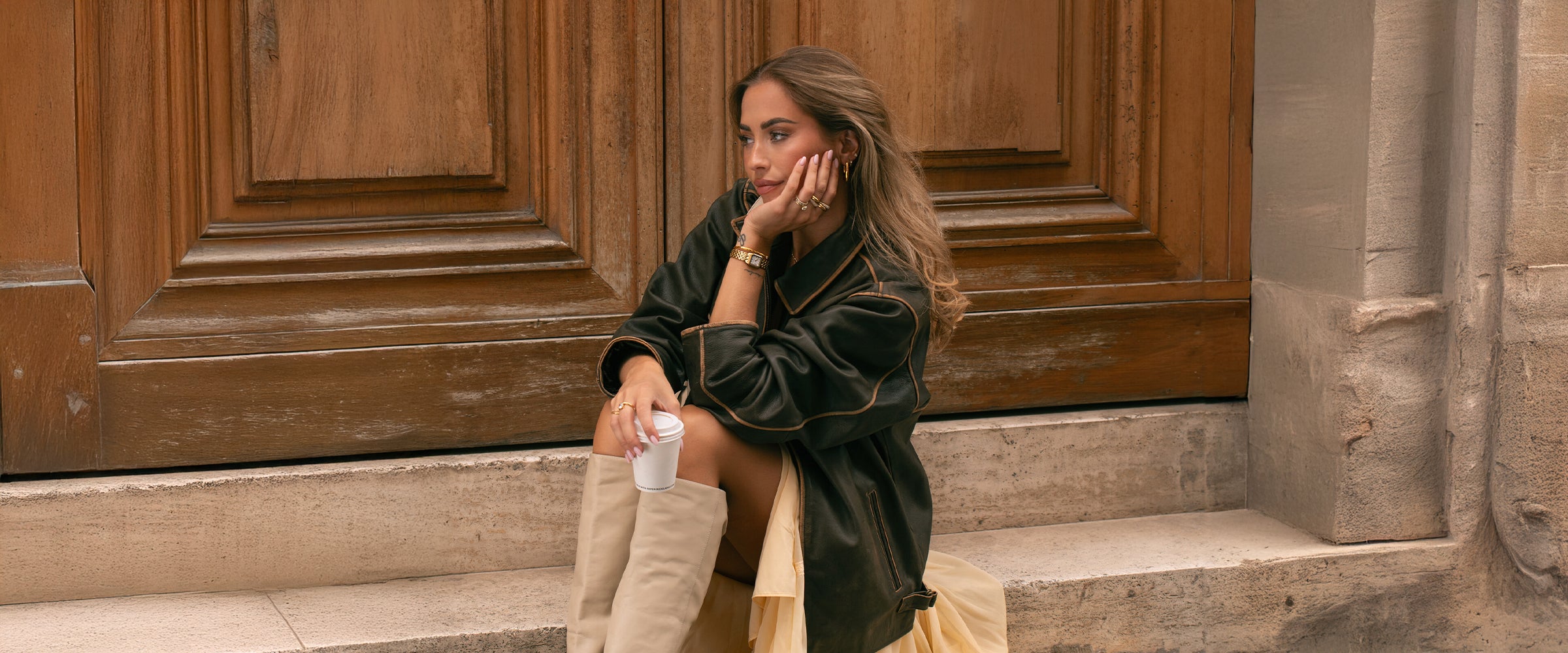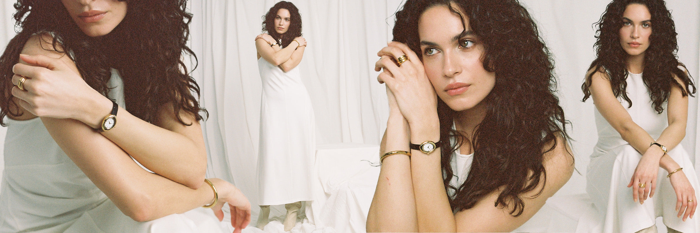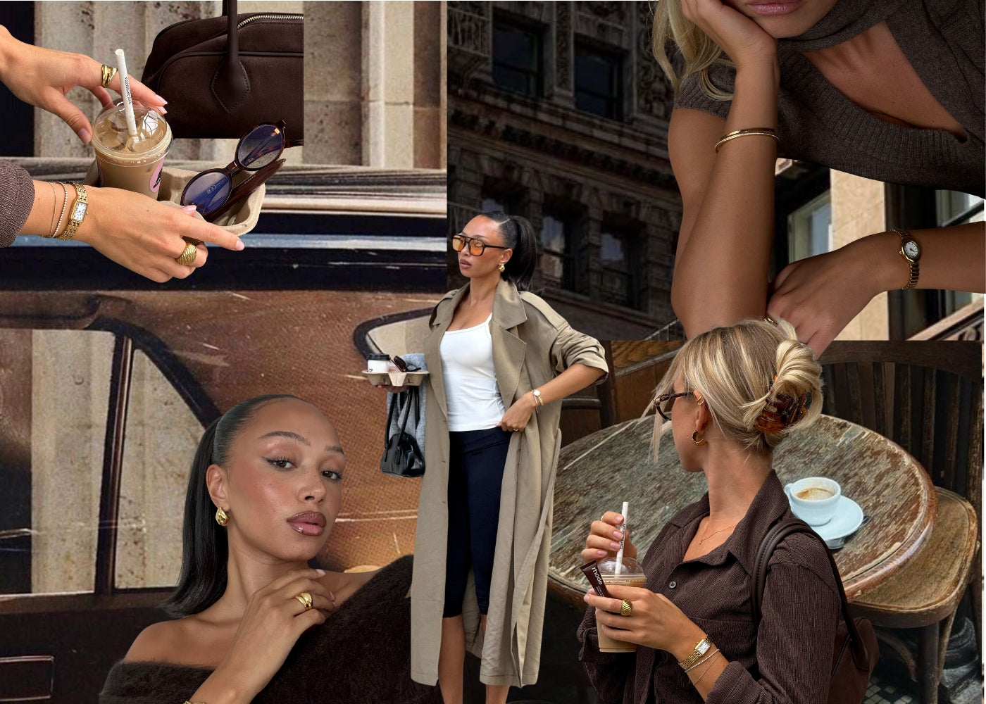Bær guldsmykker og ure, der fremhæver varme brune nuancer med diskret elegance. Følg sæsonens tendenser med tidløse designs og omhyggeligt udførte detaljer – perfekt til en hyggelig dag eller en særlig aften.