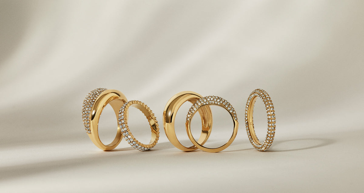 Pyntede ringe i farverne guld og sølv. En kombination af klassisk elegance og udtryksfulde detaljer.