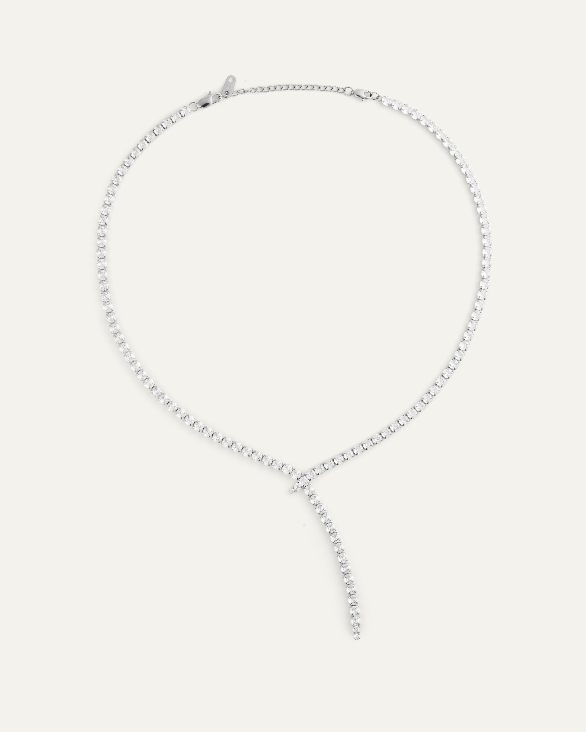 Cool shine and defined shape. Alora in silver color frames the neck with a row of white cubic zirconia, giving a clear and calm shimmer.