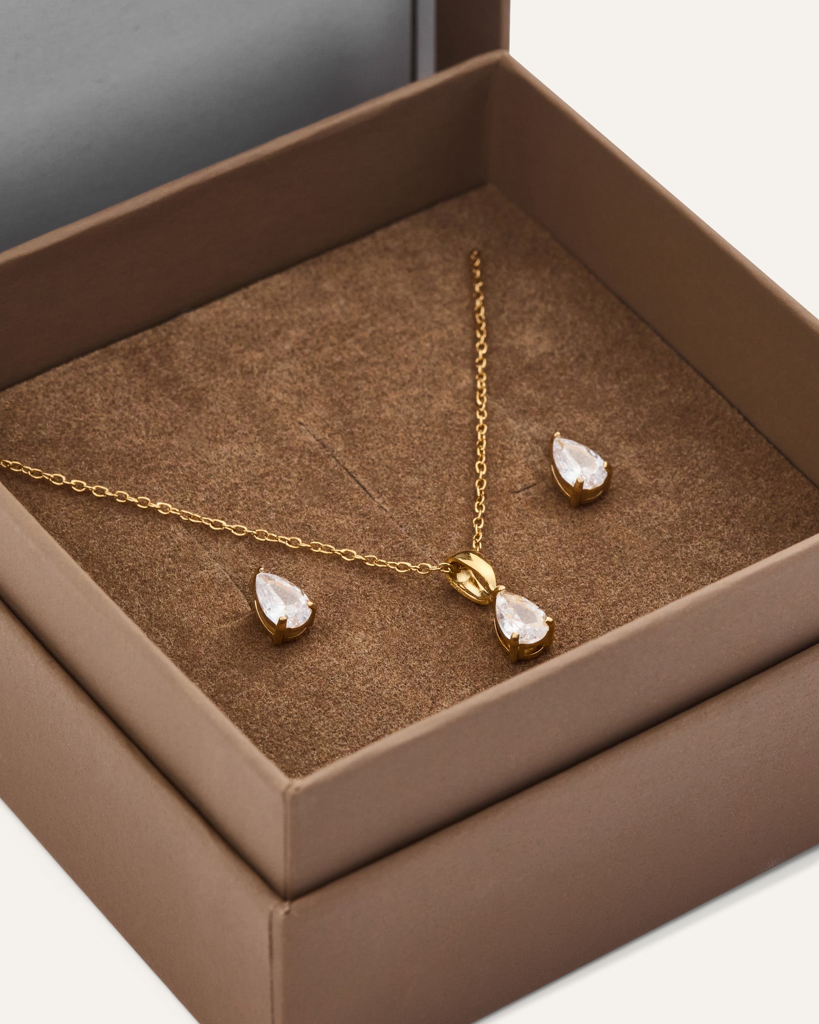 Et stilrent sæt med en halskæde og vores bedst sælgende øreringe. Designet til at skabe et tidløst, klassisk look. Den perfekte gave til en, du holder af – eller til dig selv.
