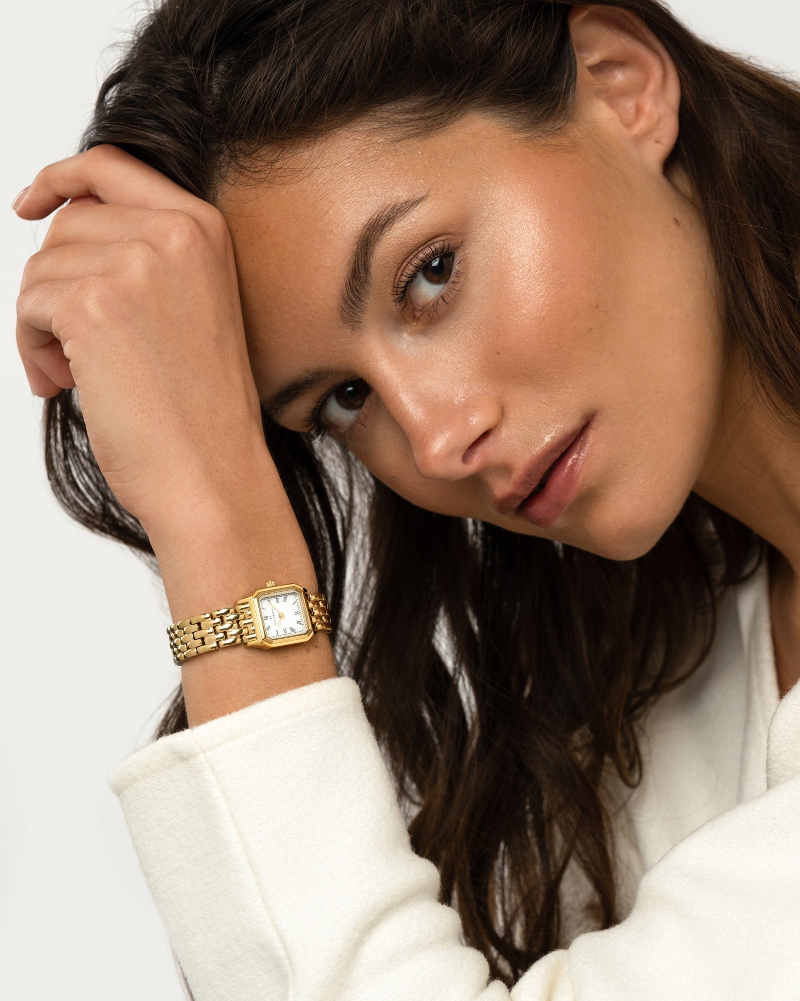 En klassiker med et tidløst design. Urkassen i rustfrit stål indrammer en skive med romertal og kombineres med en traditionel lænkerem.