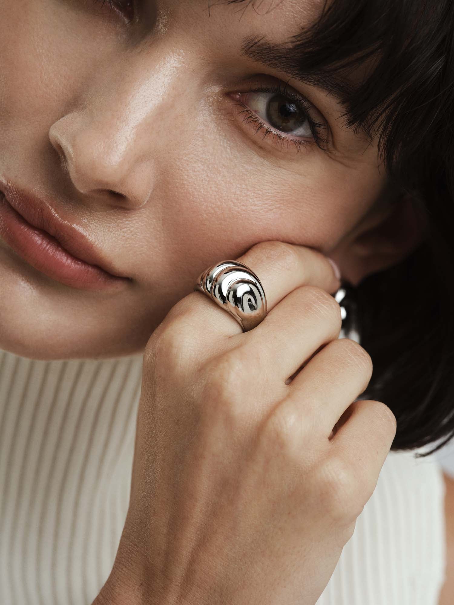Deco Bold Ring har en skulpturel og bølgeformet overflade, der skaber et dynamisk udtryk. Ringen er fremstillet i massivt rustfrit stål med slidstærk PVD-belægning. Den er vandafvisende og holdbar – brug den hver dag, og svøm, træn eller tag et bad uden at bekymre dig om farven falmer.