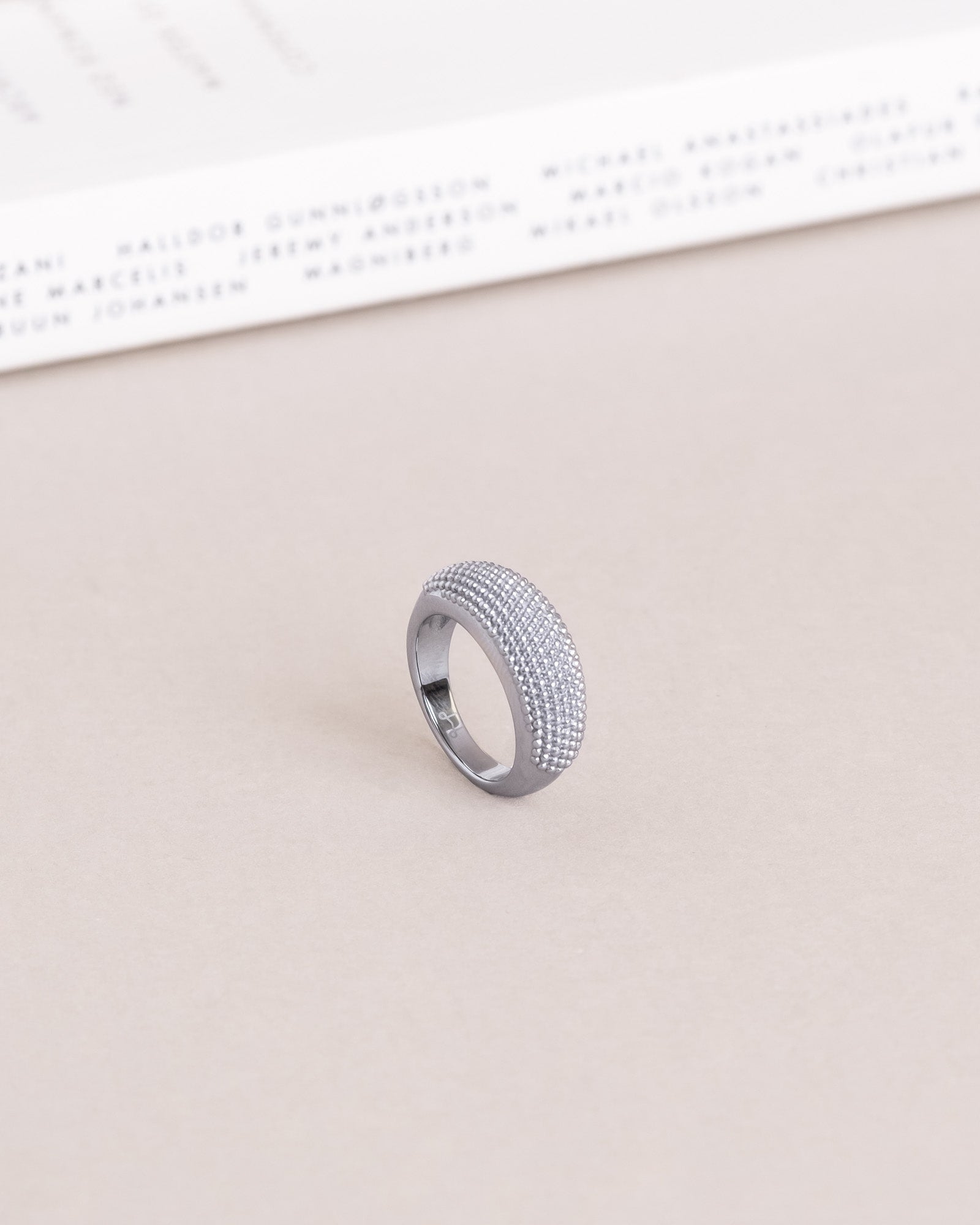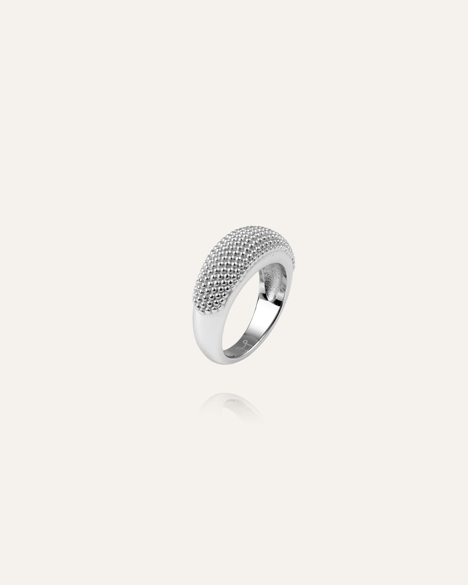 Honey Ring – et afrundet design med en struktureret overflade. Fremstillet i massivt rustfrit stål med PVD-belægning – både slidstærk og vandafvisende. Brug den hver dag – svøm, gå i bad og træn uden at bekymre dig om, at farven falmer.
