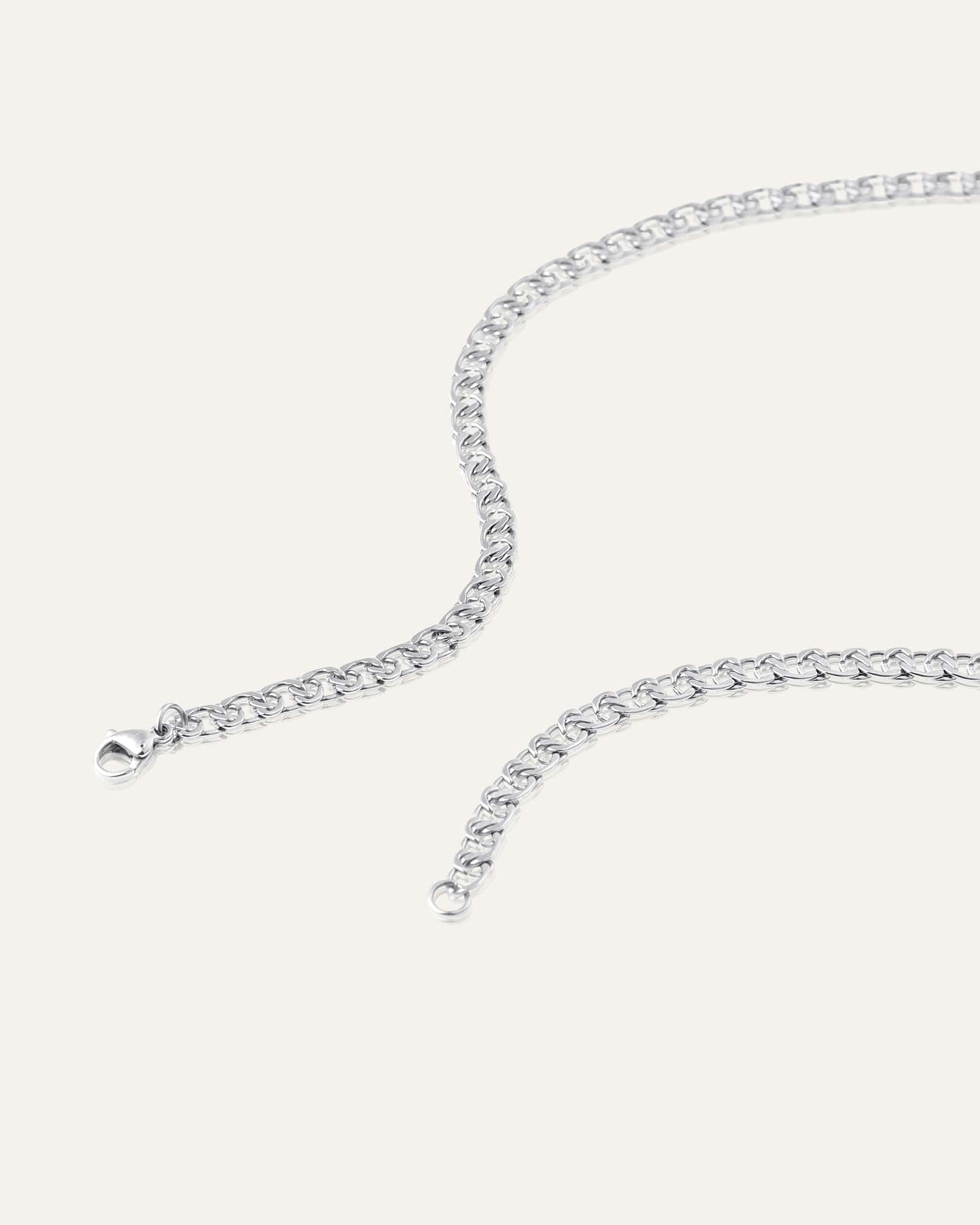 Infinity Necklace er en klassisk halskæde med curb chain-design. Fremstillet i rustfrit stål med PVD-belægning – både slidstærkt og vandafvisende, så farven og glansen holder over tid. Forlængerkæden kan nemt fjernes for en tilpasset pasform.
