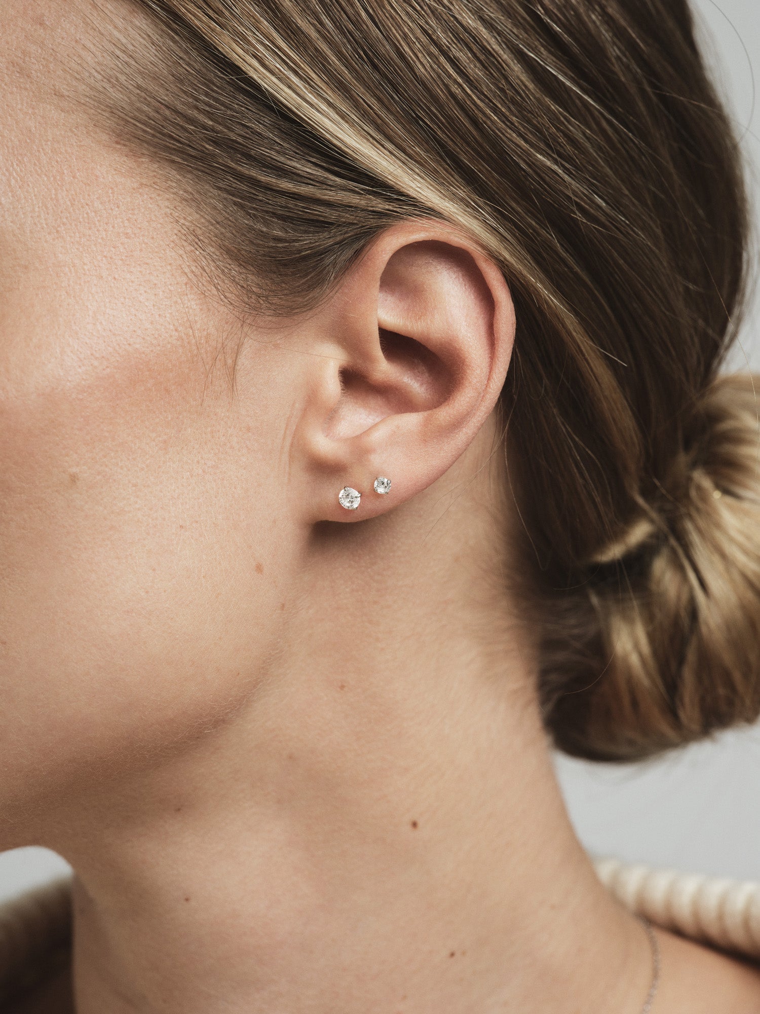 Tidløs elegance i et minimalistisk design. Jolie White Studs er diskrete, funklende øreringe med hvide zirkoniasten. Fremstillet i rustfrit stål for langvarig holdbarhed og glans.