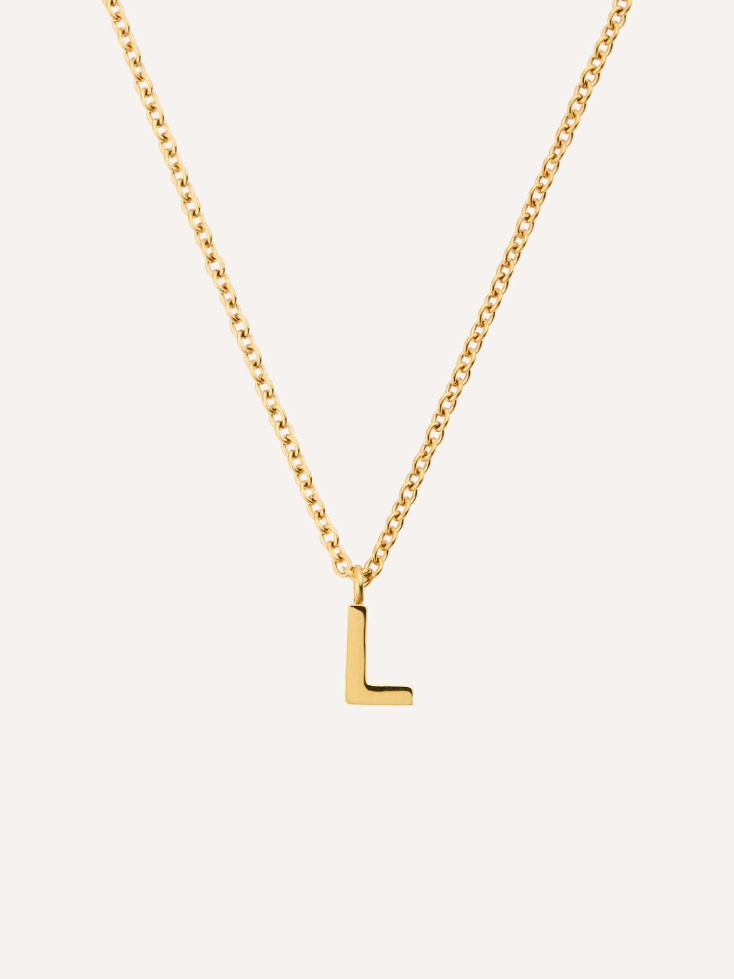 Et personligt halskæde med et minimalistisk udtryk. Petite Letter Necklace har en fin kæde og et lille bogstavvedhæng, der skaber et diskret statement – lige så smuk alene som i lag med andre halskæder. Fremstillet i rustfrit stål med 18K guldbelægning (PVD) for en slidstærk, vandafvisende finish, der bevarer farven over tid.