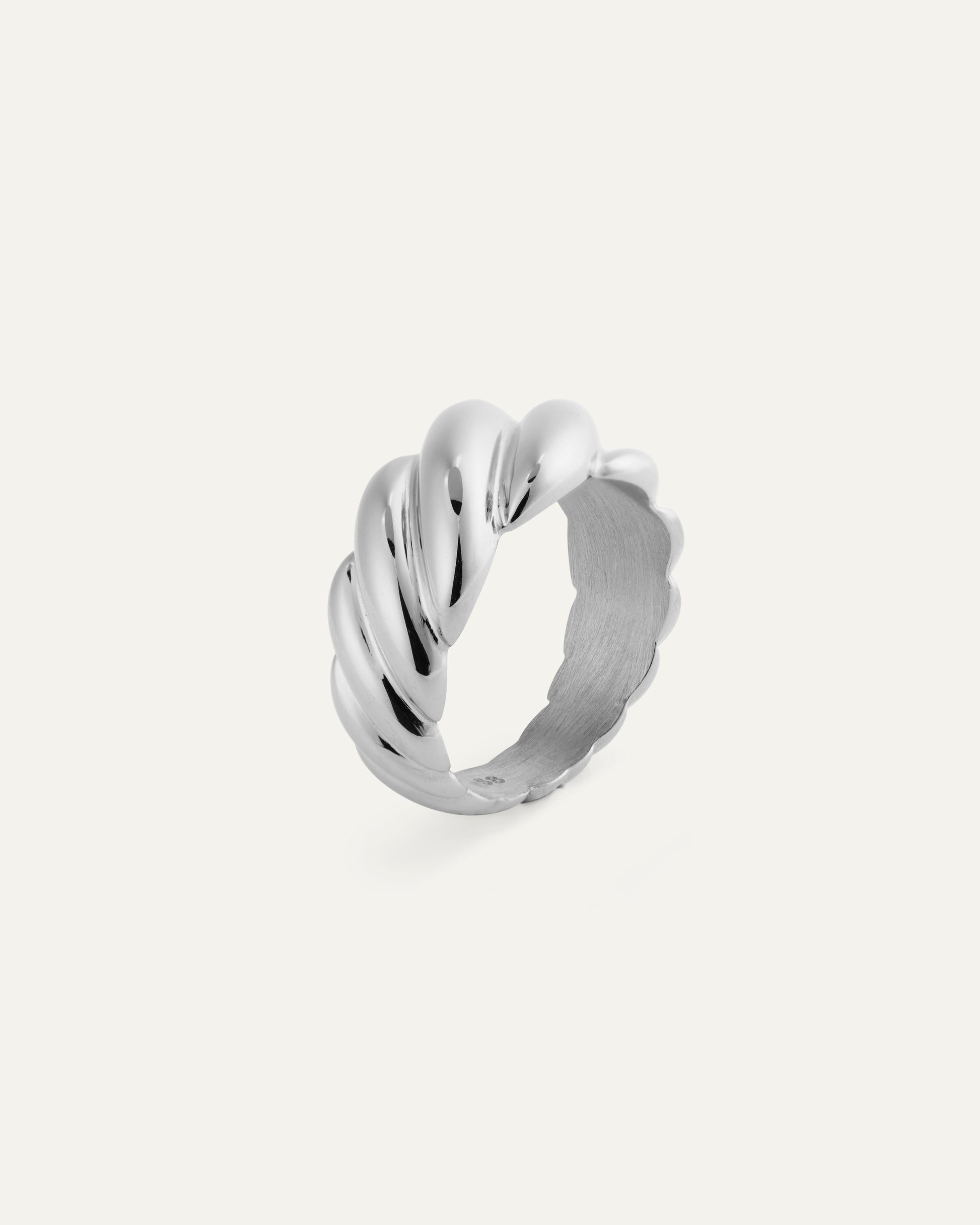 Softly shaped ring with rounded volumes that create a clean, defined look. The silver color keeps the style cool and works just as well for everyday wear as for evening.