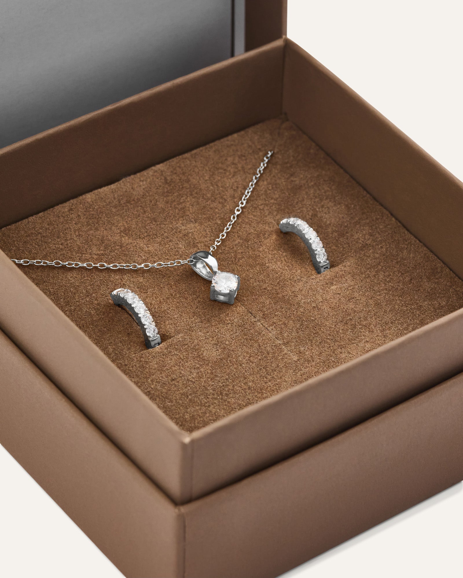 Et stilrent sæt med en halskæde og vores bedst sælgende øreringe. Designet til at skabe et tidløst, klassisk look. Den perfekte gave til én, du holder af – eller til dig selv.