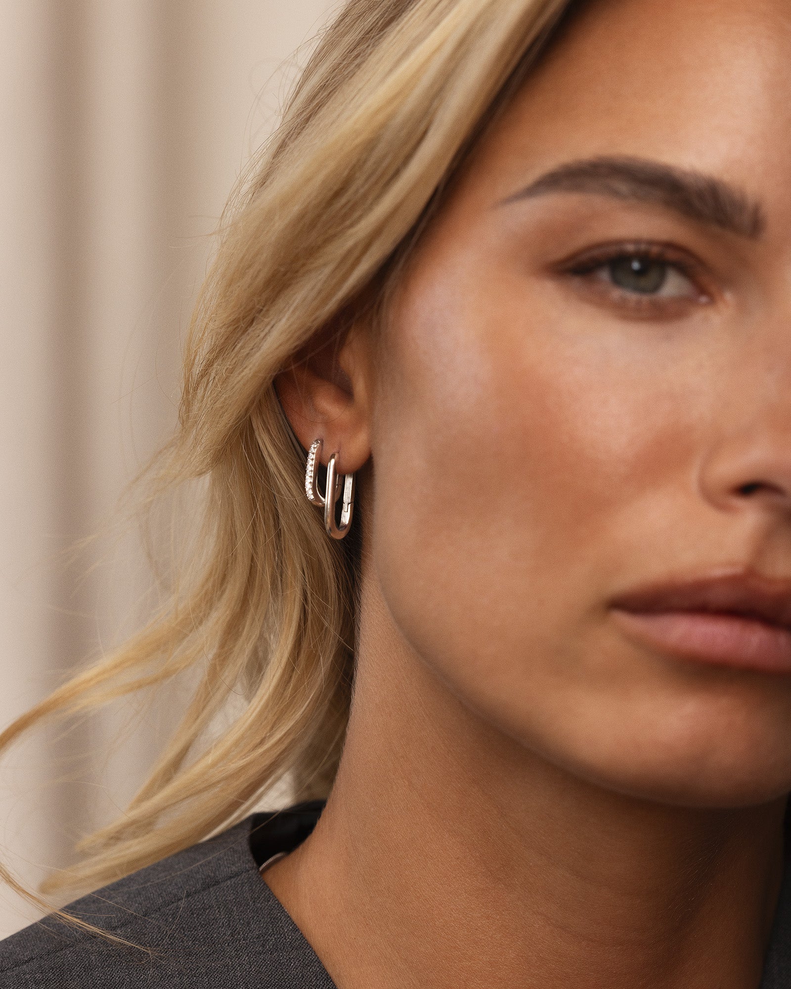 Slim U-Hoops shimmer with a warm gold tone. The slim U-shape with softly rounded lines gives a clean, timeless look that’s easy to wear and style—from day to night.
