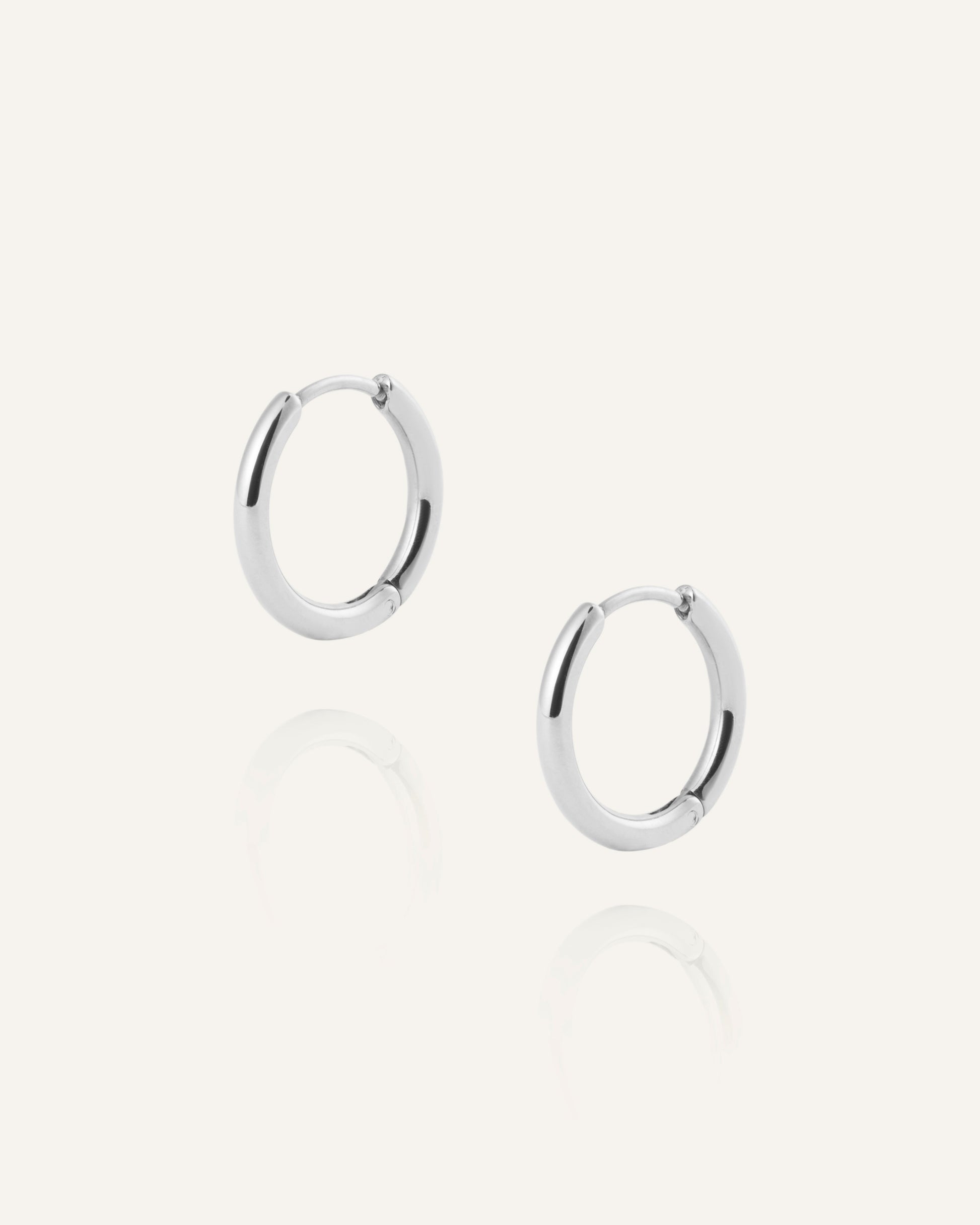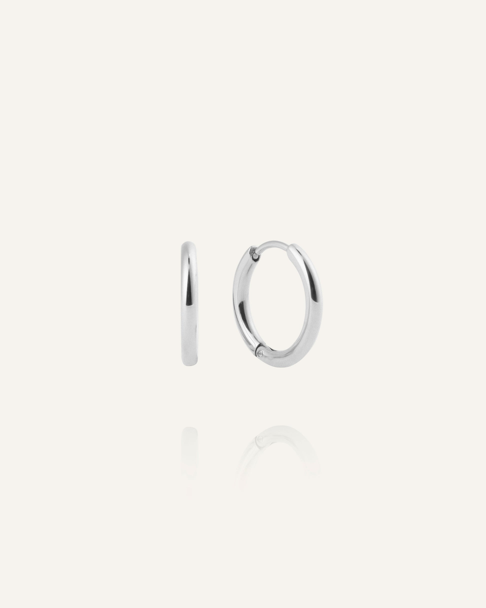 Slim Steel Hoops feature a slender, elegant profile that catches the light in a crisp silver tone. The pared-back design delivers a clean finish that works just as well solo as layered with other earrings.