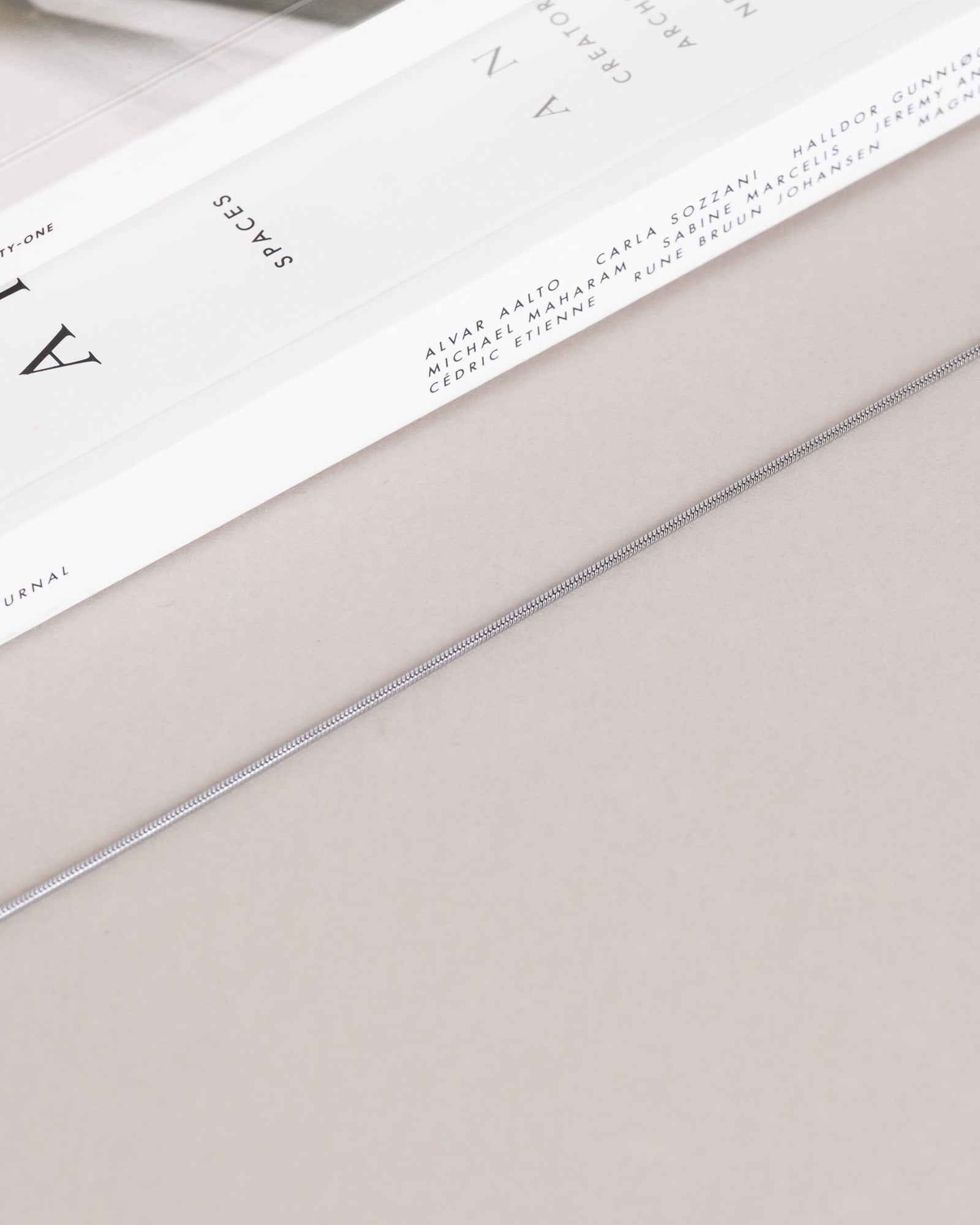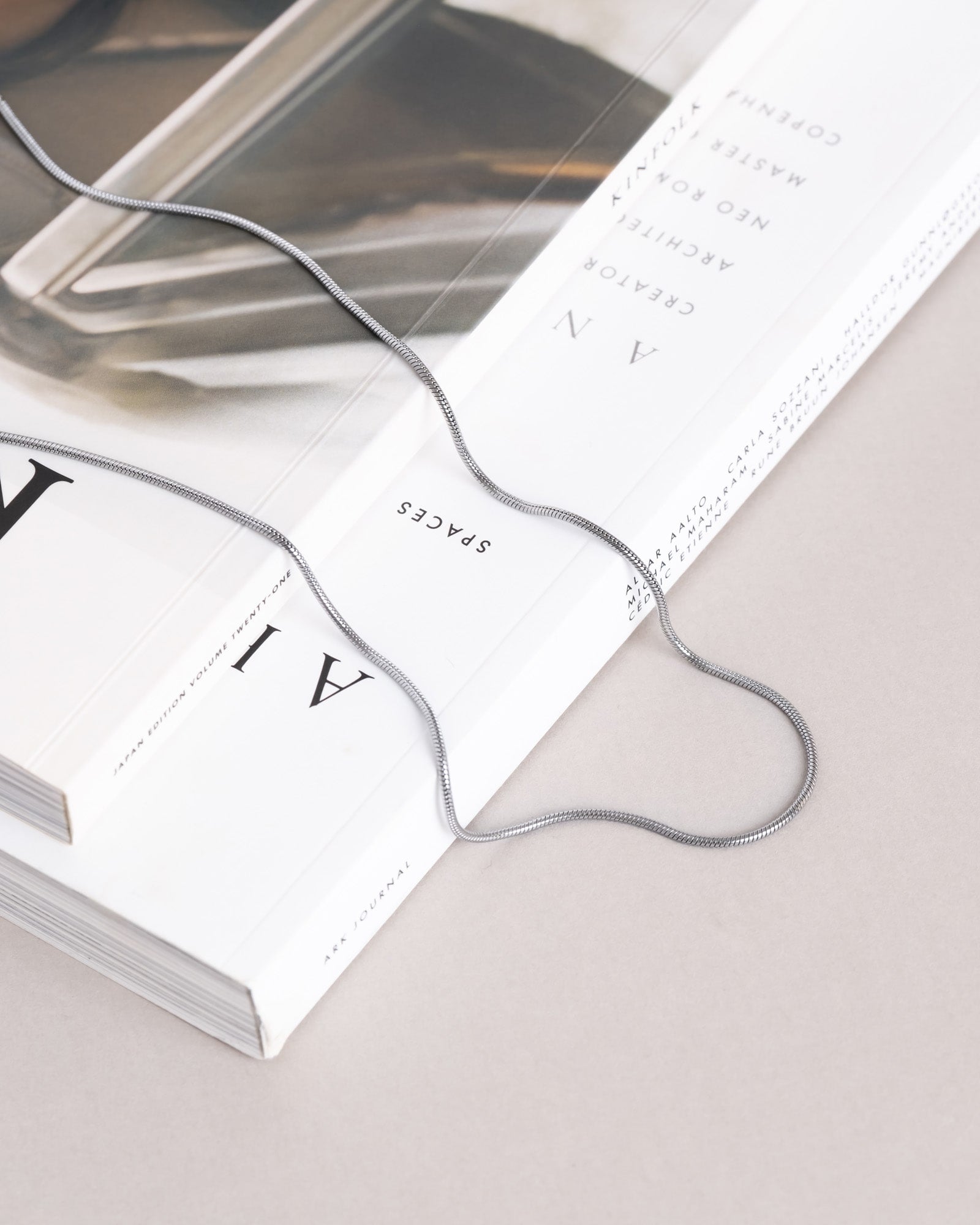 En klassisk halskæde med et glat og flydende design. Fremstillet af rustfrit stål med PVD-belægning – både slidstærk og vandafvisende, så den bevarer sin farve og glans over tid. Forlængerkæden kan nemt fjernes for en tilpasset pasform.