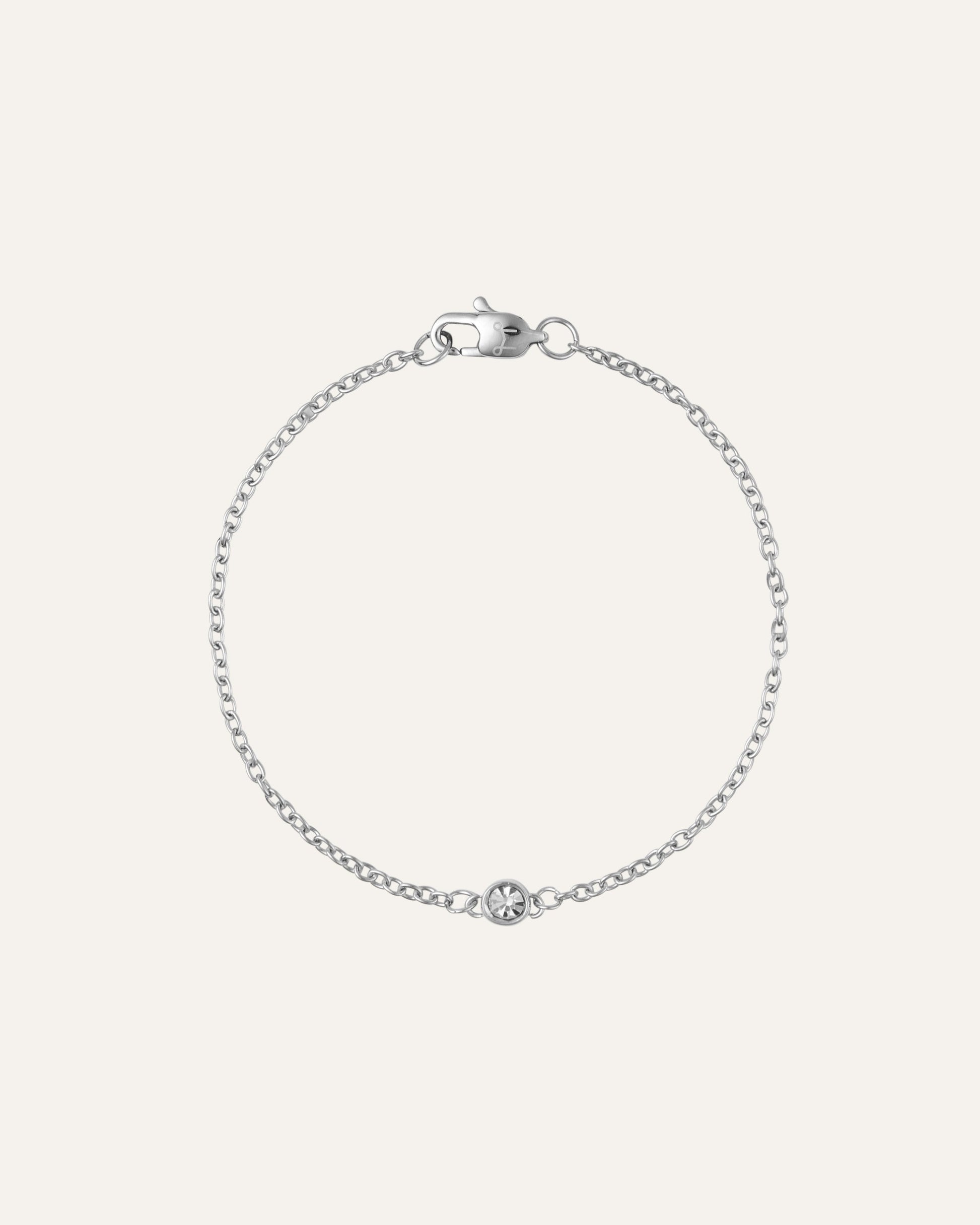Tidløs elegance i et minimalistisk design. Det fine armbånd har en delikat, finleddet kæde med en rund hvid kubisk zirkonia. Fremstillet i rustfrit stål med PVD-belægning – holdbart og vandafvisende, og bevarer både farve og glans over tid. Forlængerkæden kan nemt fjernes for en tilpasset pasform.