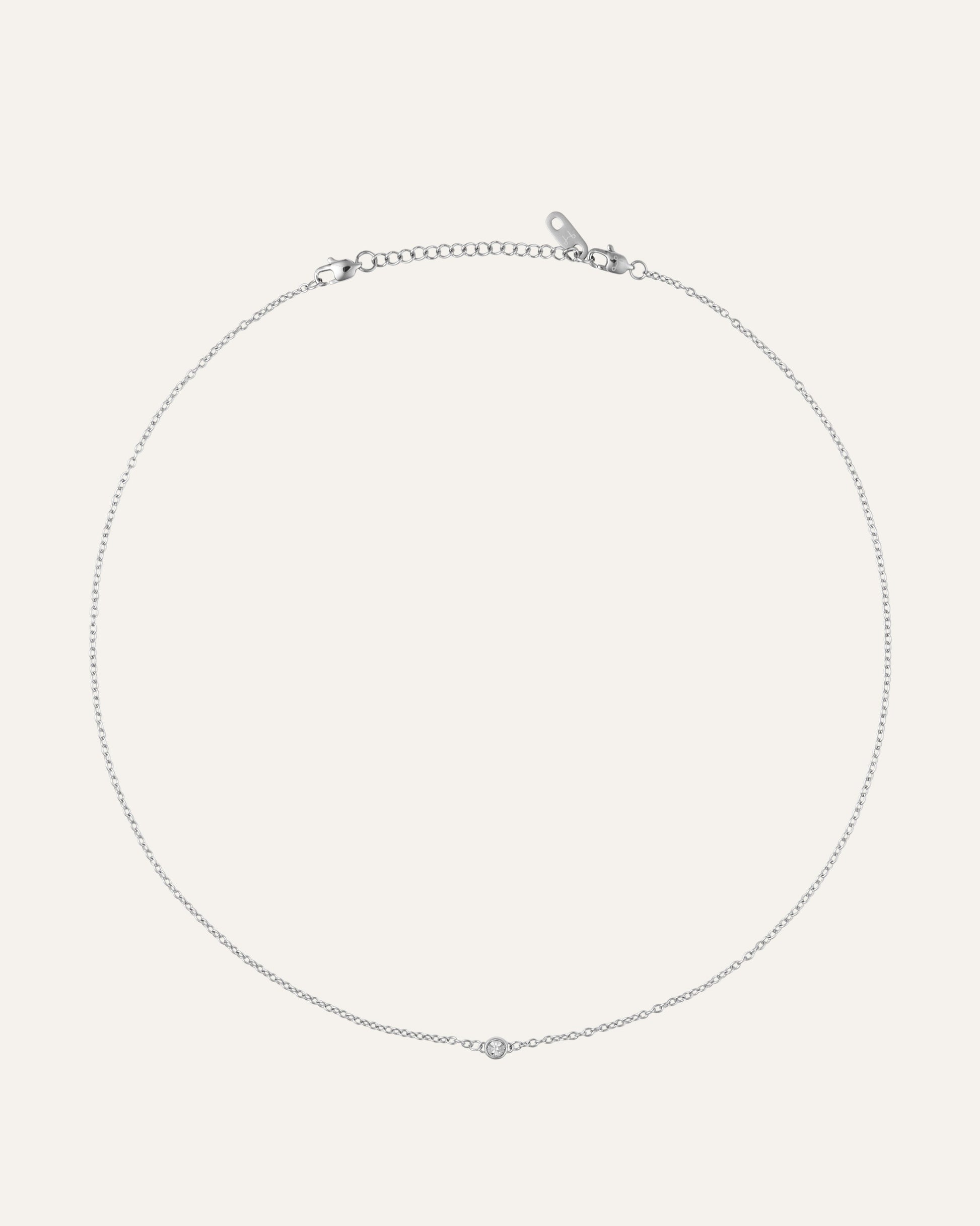 En minimalistisk halskæde med en delikat, klassisk kæde og en diskret rund sten. Fremstillet i rustfrit stål med PVD-belægning – holdbar og vandafvisende, og bevarer både farve og glans over tid. Forlængerkæden kan nemt fjernes for en tilpasset pasform.