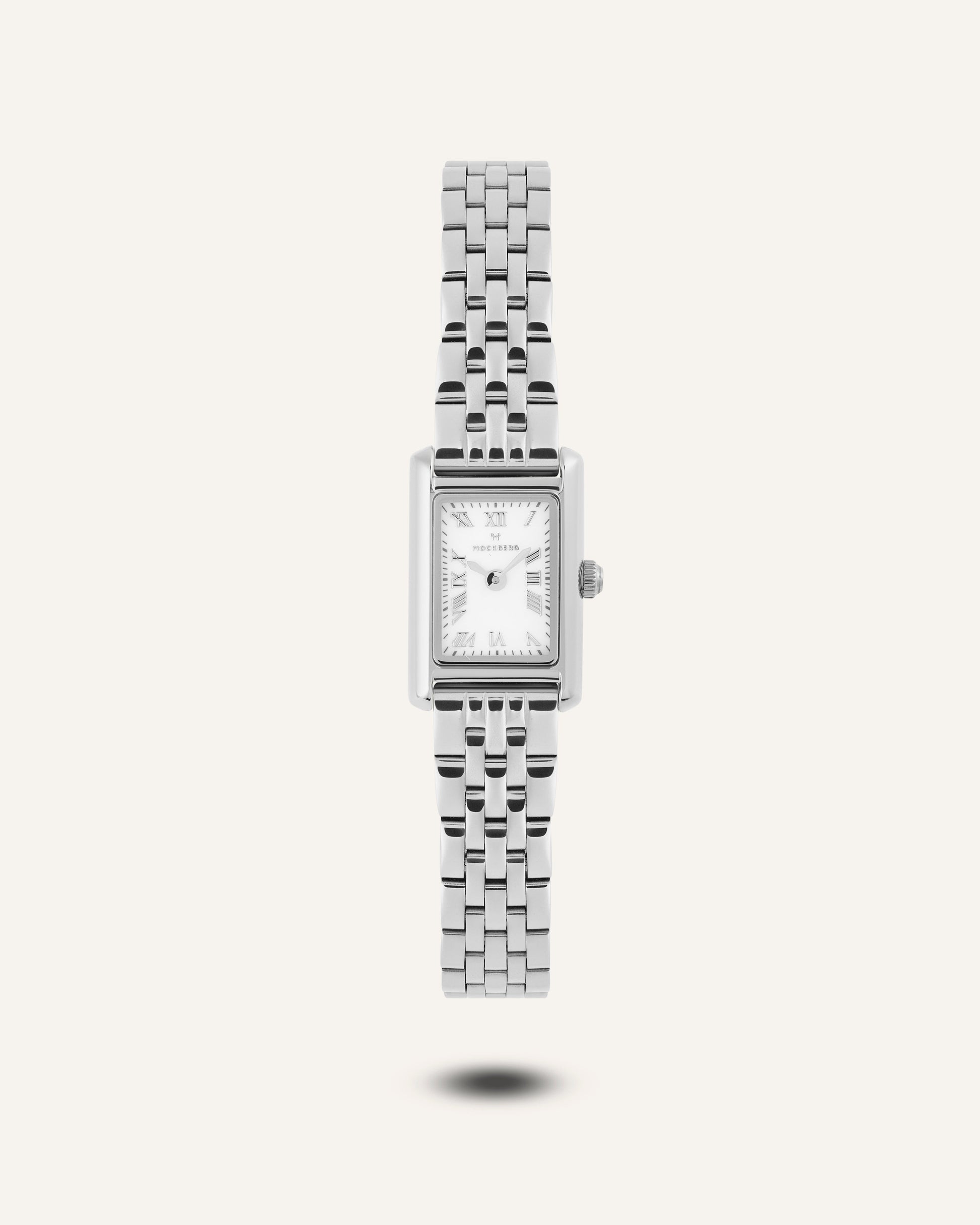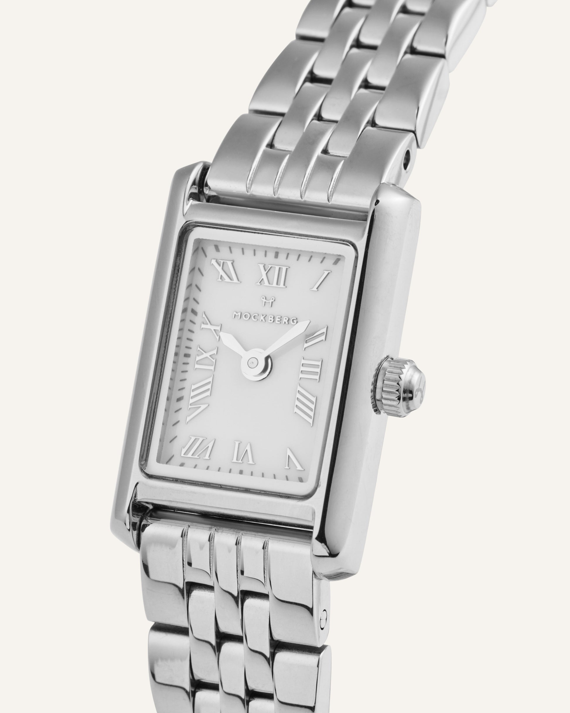 Precision, right-on-point design. The petite size and the clean dial with Roman numerals create a confident yet calm impression. The silver tone keeps the overall look cool. A faithful companion for every day.